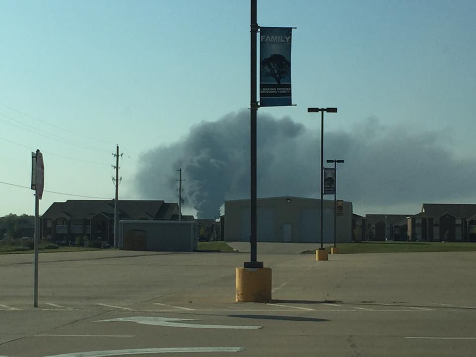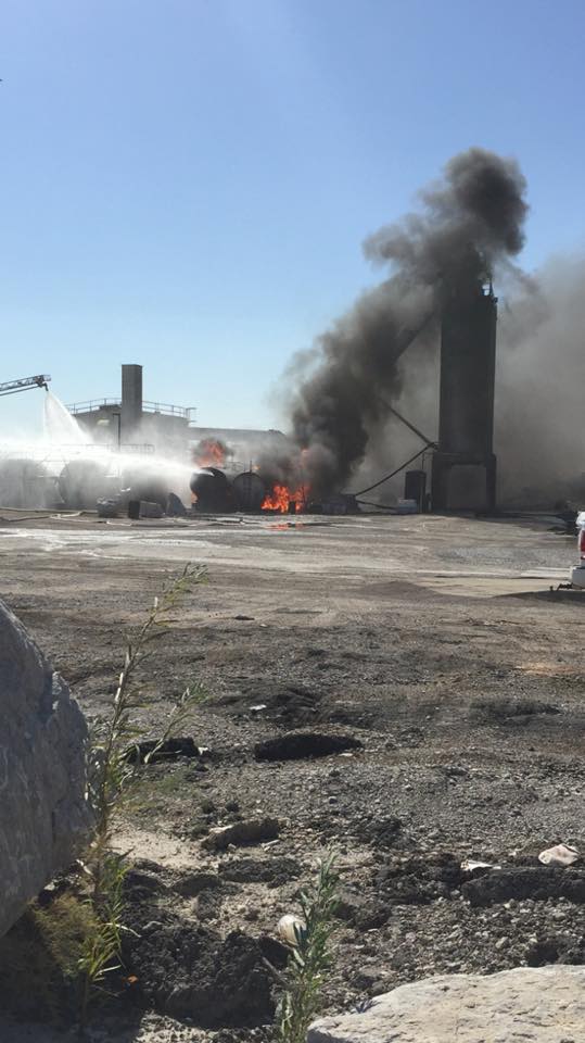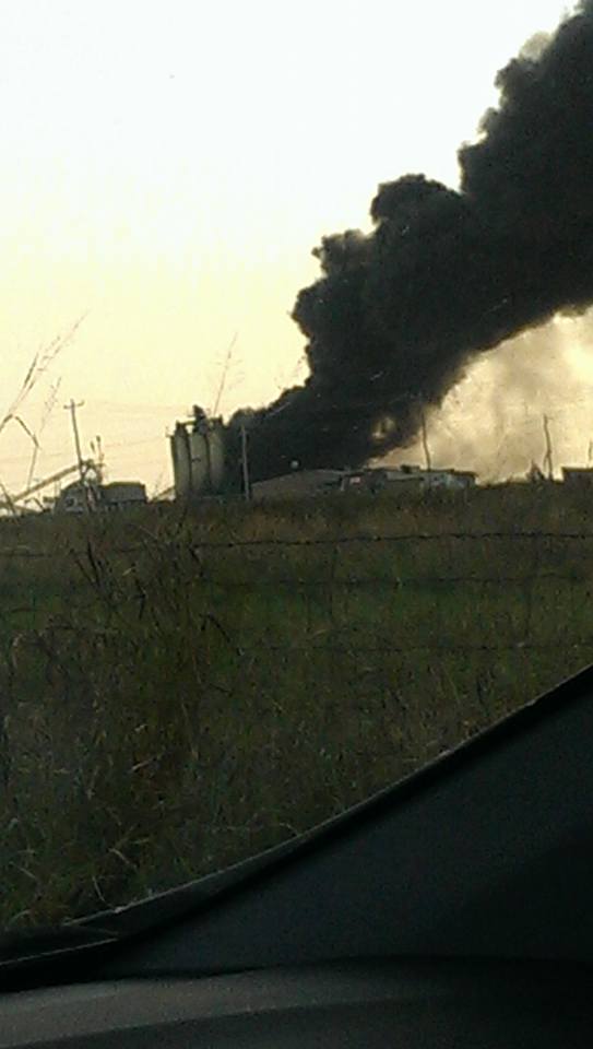 As we first reported this morning on our Facebook page, seven area fire crews and the Air National Guard are still on scene of a fire that started at an asphalt plant at 66th Street North and 149th East Avenue around 9:30 this morning. Tankers with petroleum caught fire and quickly spread.