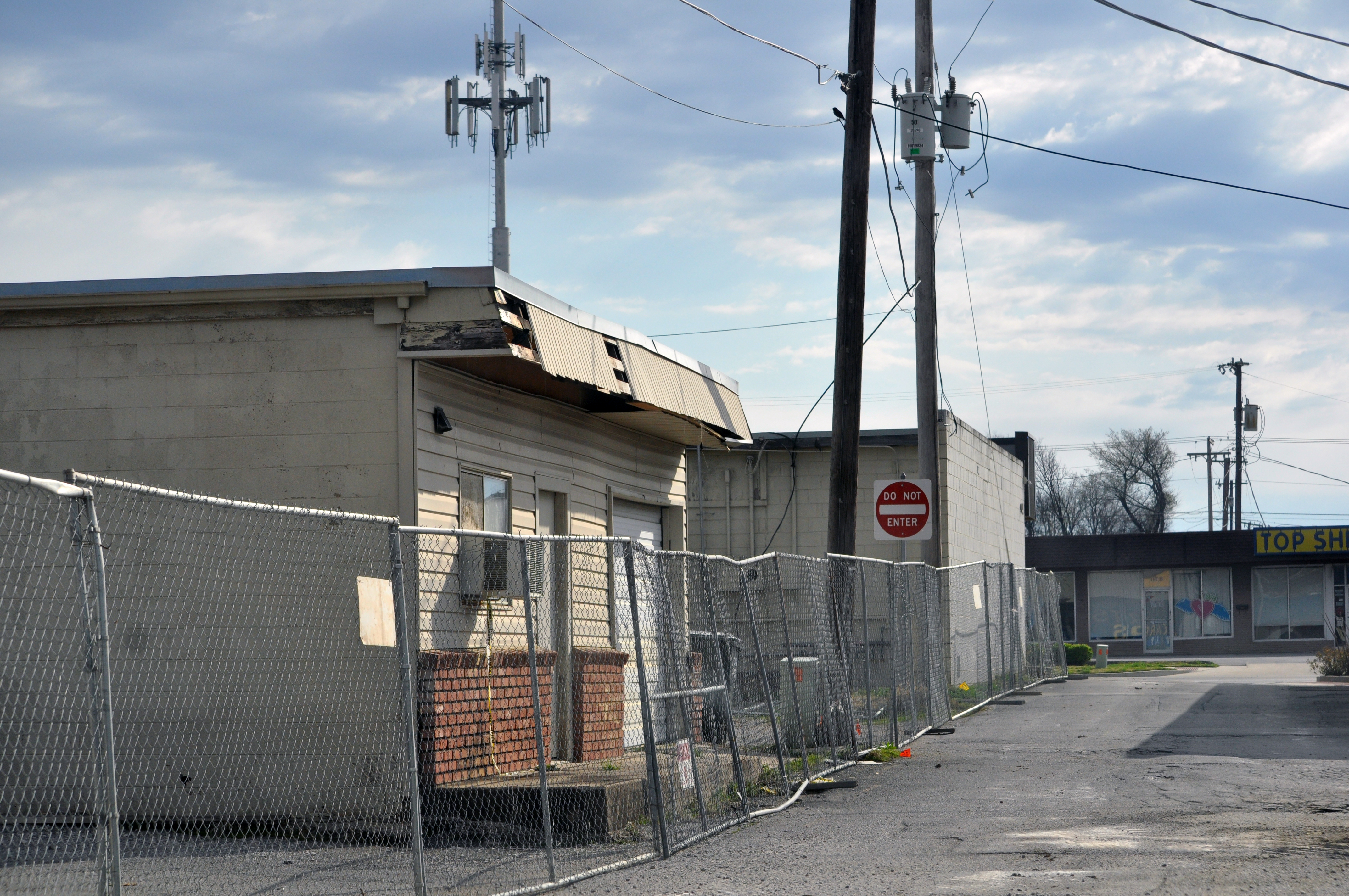 Construction fencing is going up and heavy equipment is being brought in for the demolition of the building that once held 360 Sports, The Owasso Beauty College and Scoreboard Sports Cards.