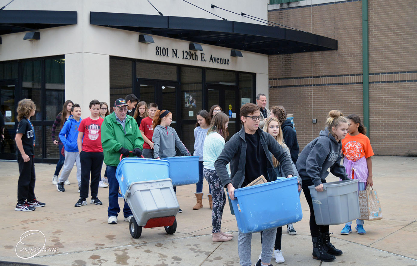 12/18/2017 – Standing in Gap received a large donation from the Owasso 6th Grade Center Monday, after a food drive at the school.