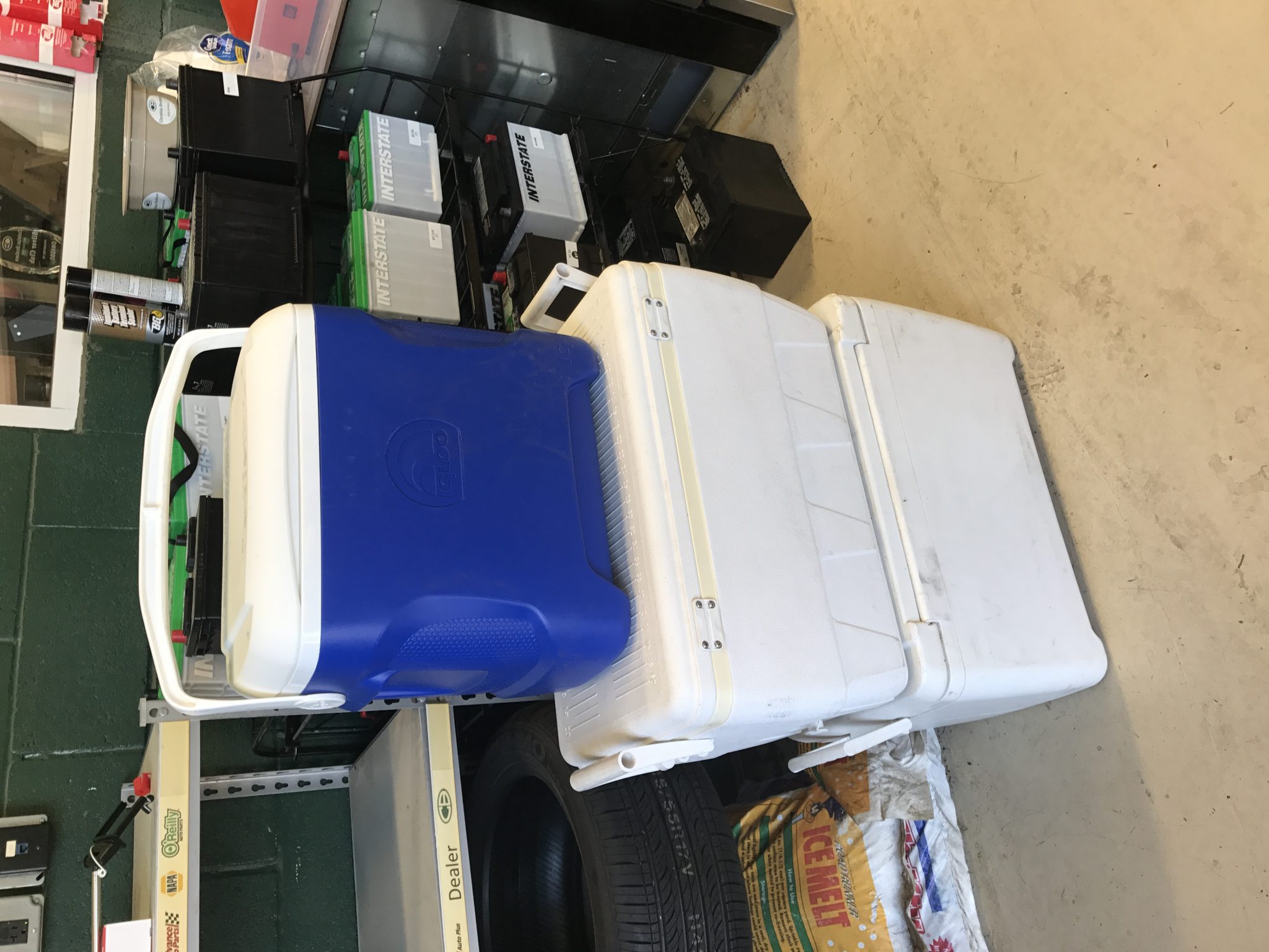 Ray Adcock of Christian Brother Automotive show off one of four ice chests the community gifted them. Photo: ©owassoisms