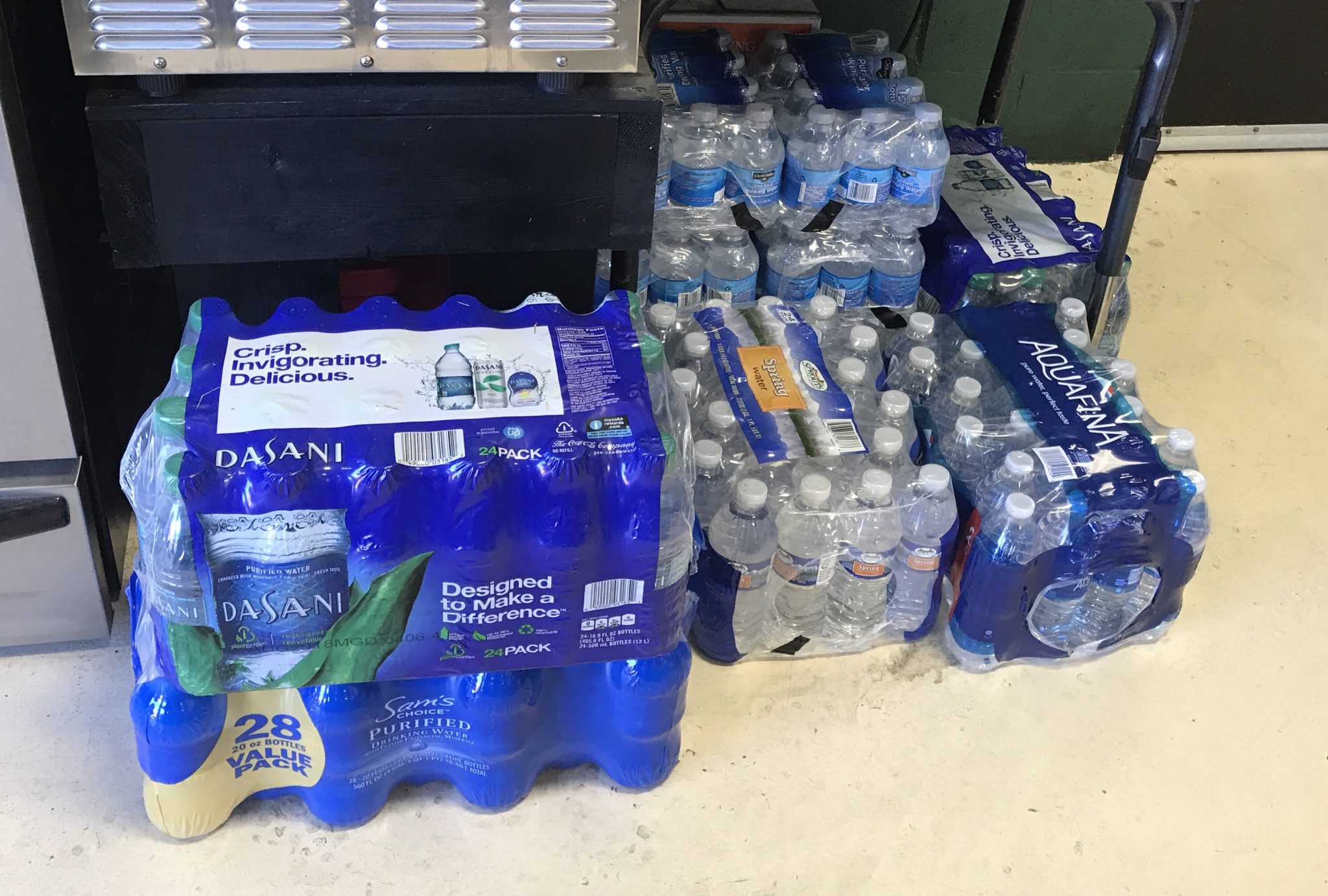 Owner Ray Adcock tells us that four ice chests and thirteen cases of water were dropped off at his business on Sunday.