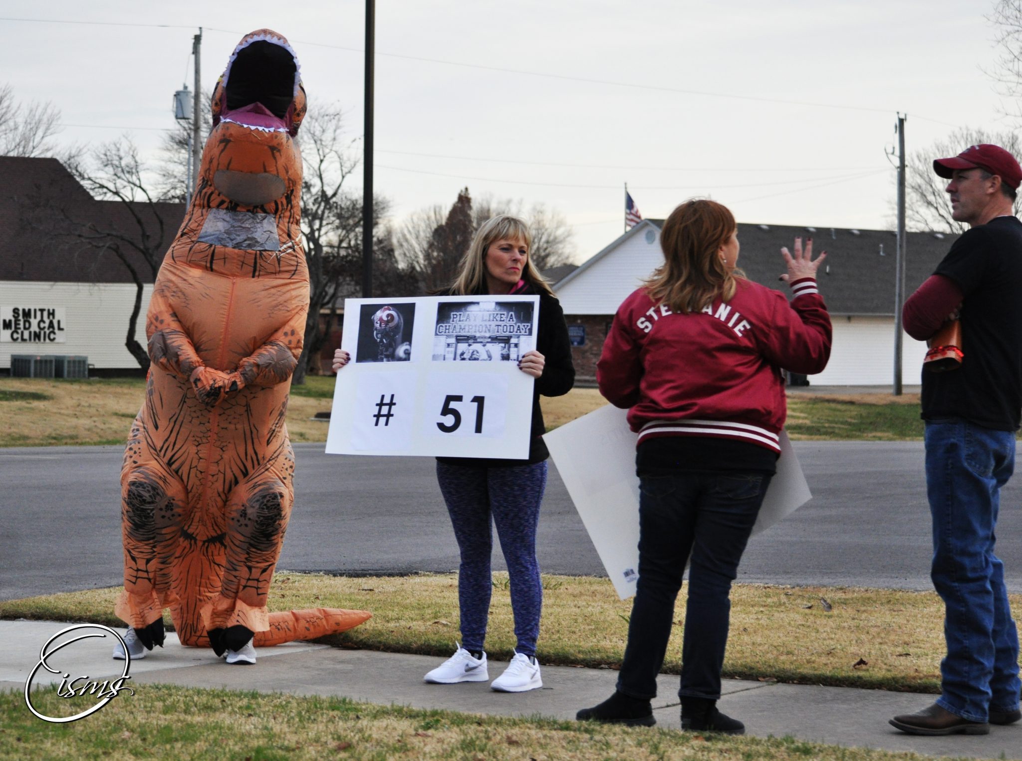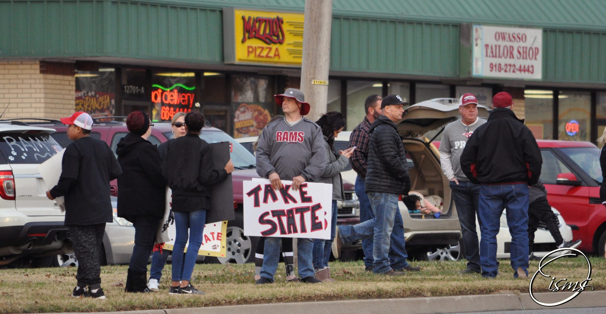 12/01/2017 Owasso Ram fans lined 86th Street North Friday afternoon to cheer on the football team as they headed out for tonight’s state championship game.