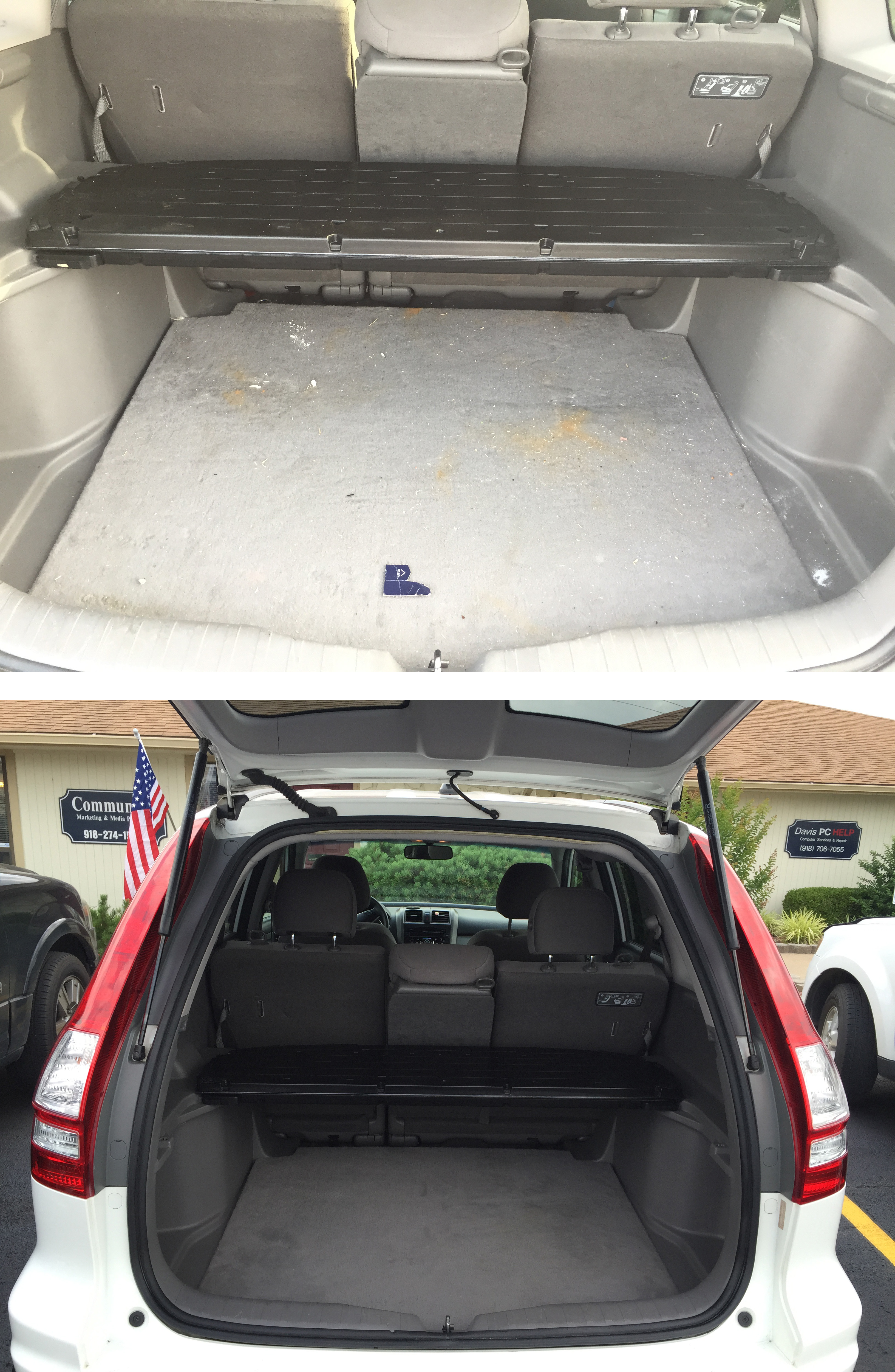 Running a 24/7 business, we have a hard time finding time to hit the car wash very often, let alone taking the car somewhere for a complete detail. With all the recent rain, our car, a Honda CRV was in desperate need of a good bath. The doggy prints on the seats were the last straw.
