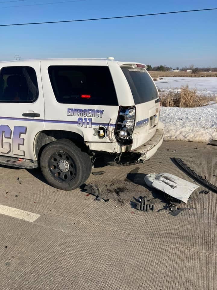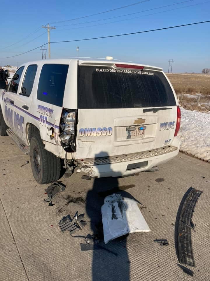 03/01/2021 – Owasso Fraternal of Police shared photos recently of one of their patrol cars that had been it by a distracted driver.