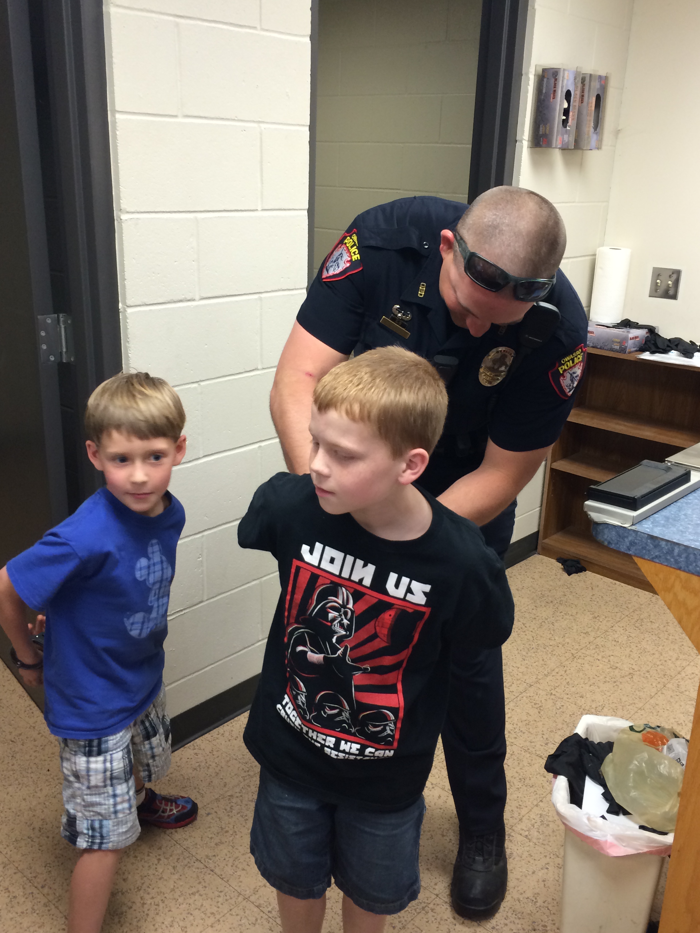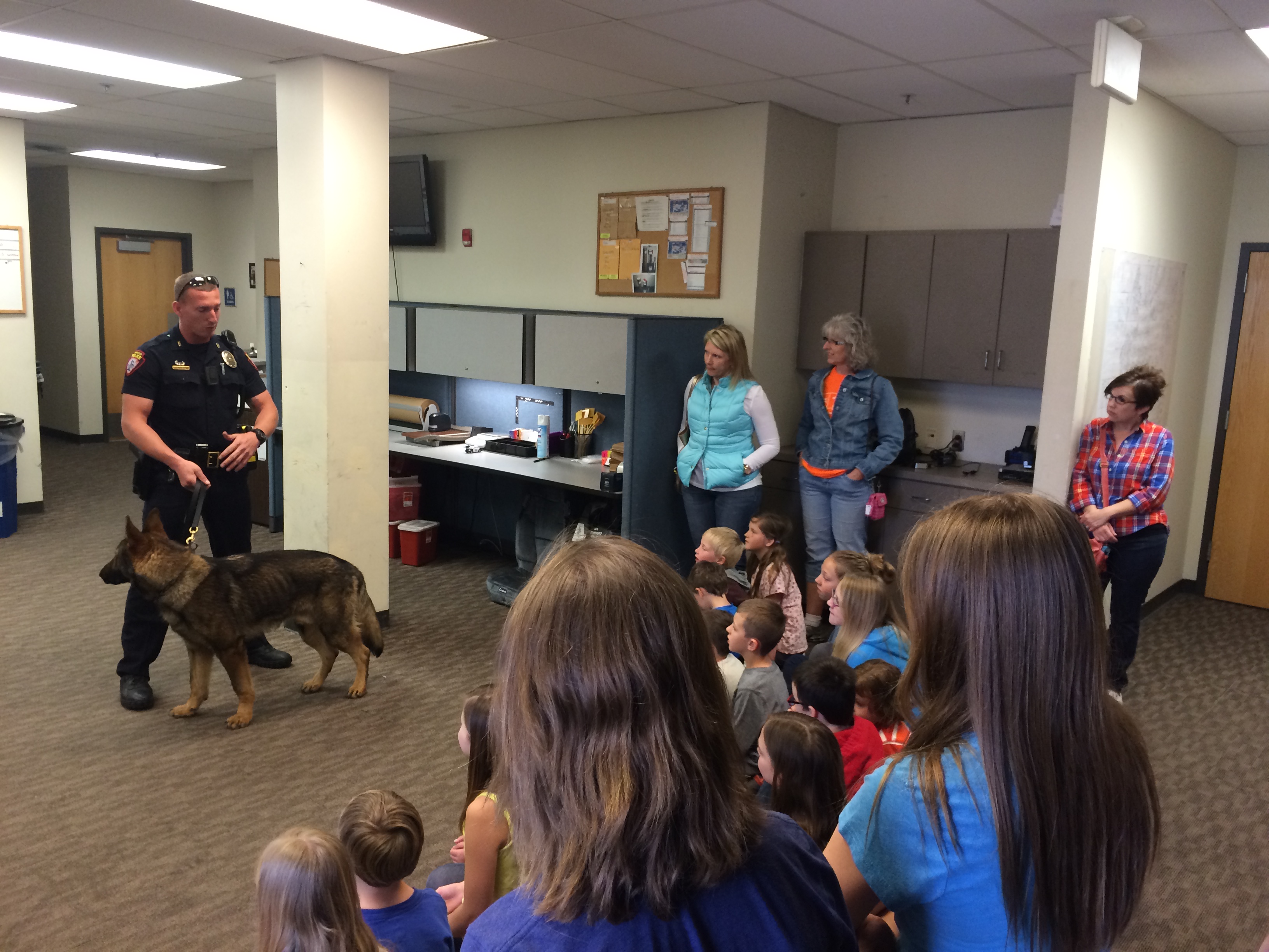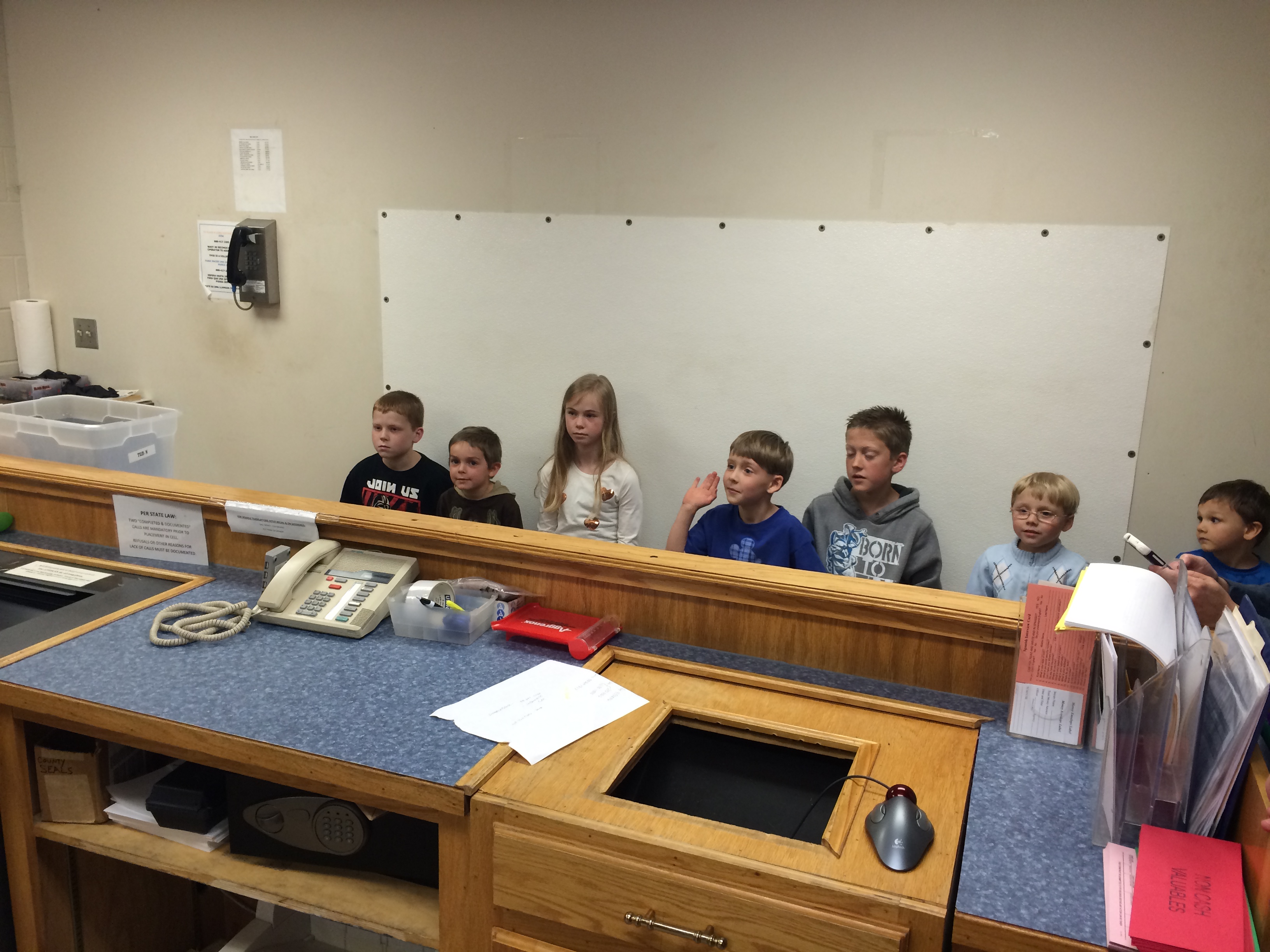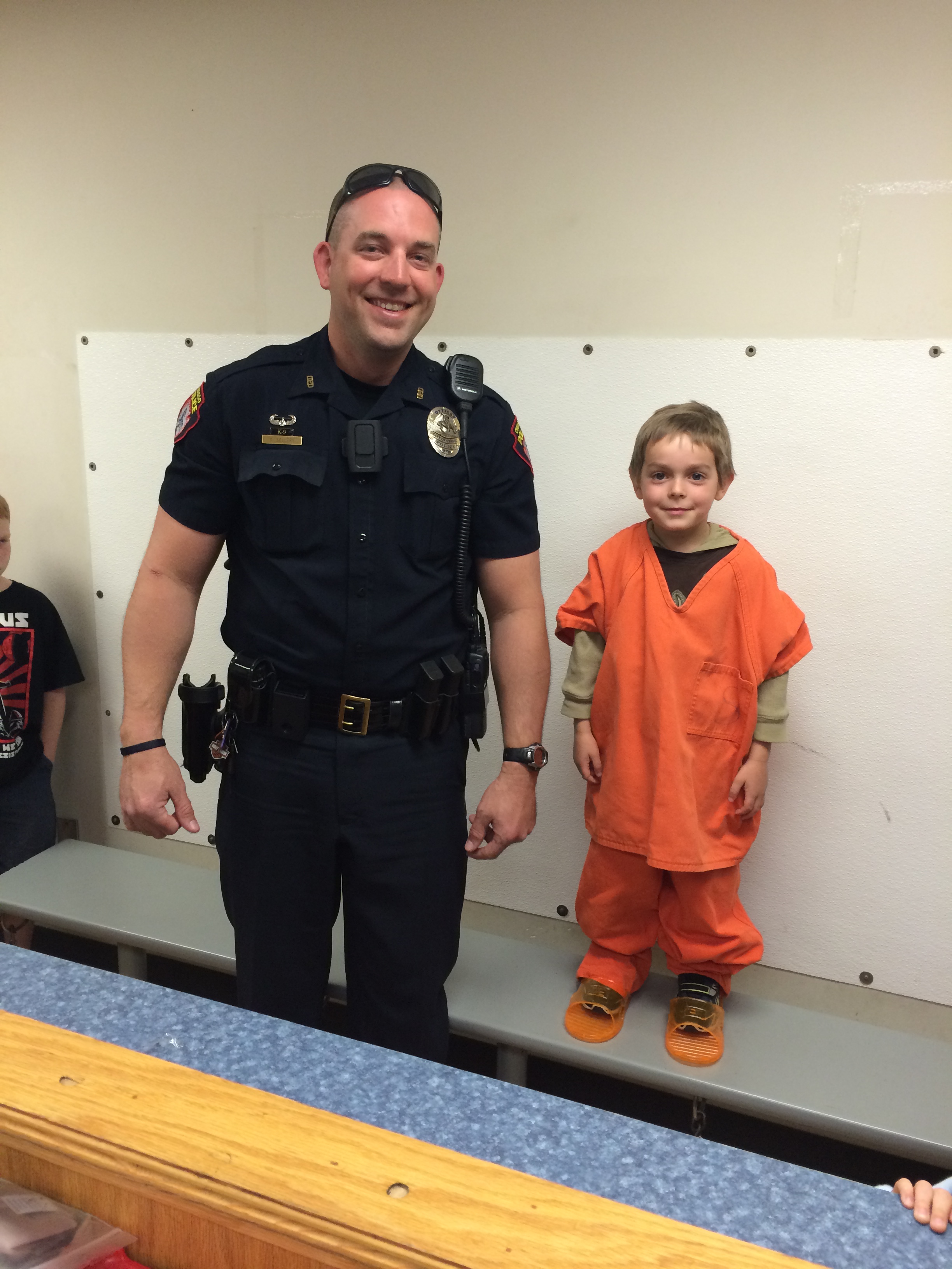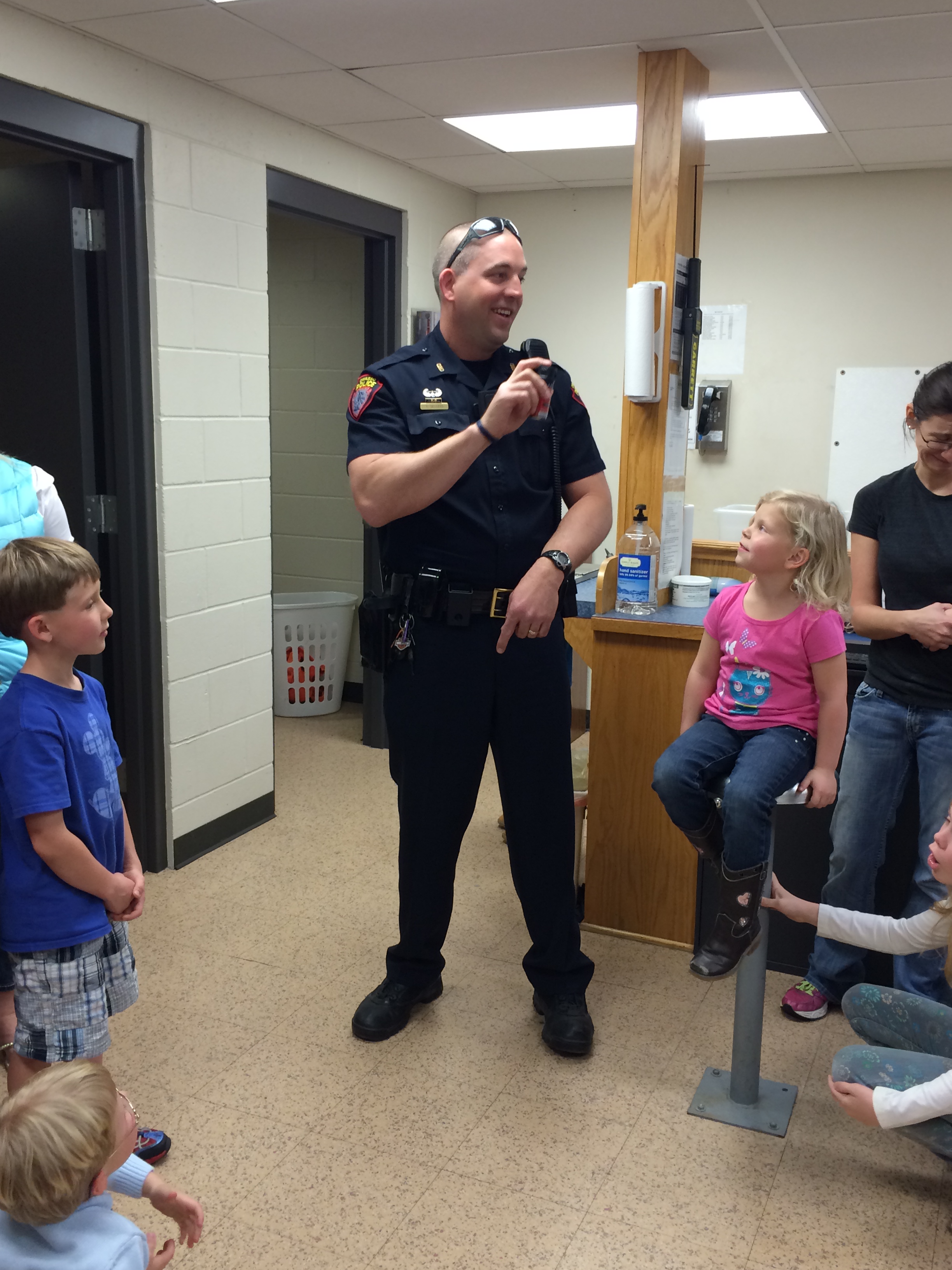 Sgt. Barnes showed the students around the dispatch room and explained what takes place there. Officer Goodell introduced the kids to his new canine “Officer Mo.” Officer Sellers took the kids through booking.