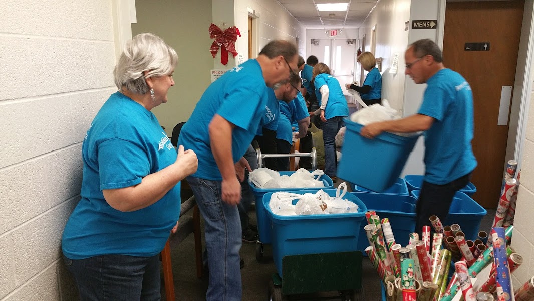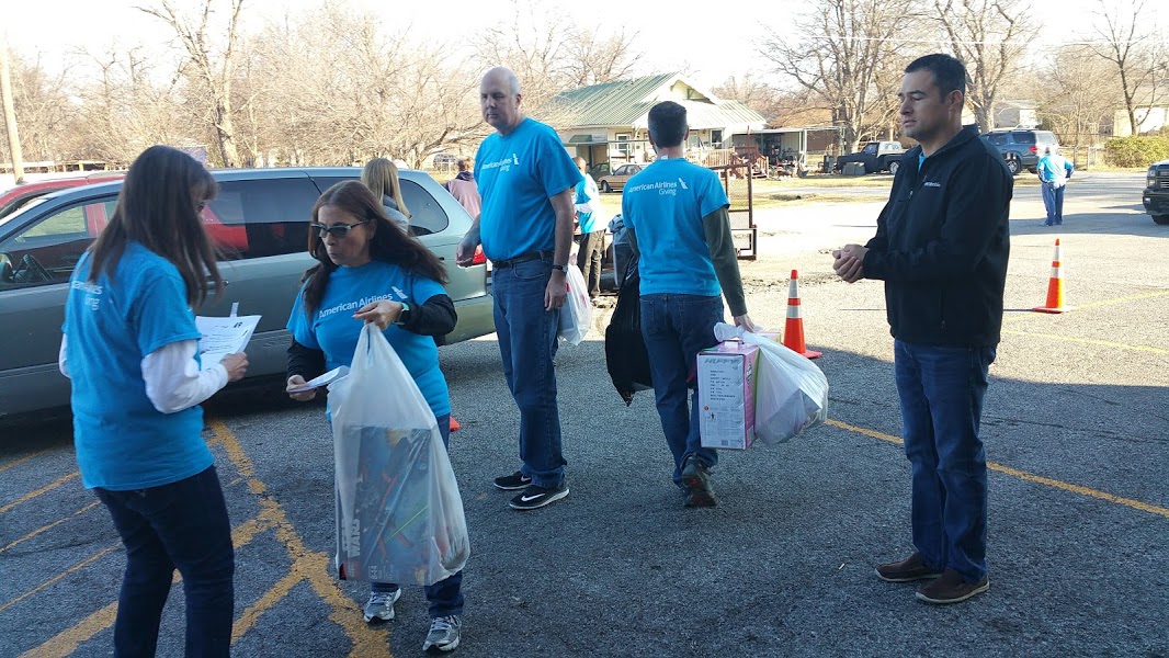 12/15/2017 – Thirty American Airlines employees assisted with Owasso Community Resources Giving Tree Distribution Friday morning.