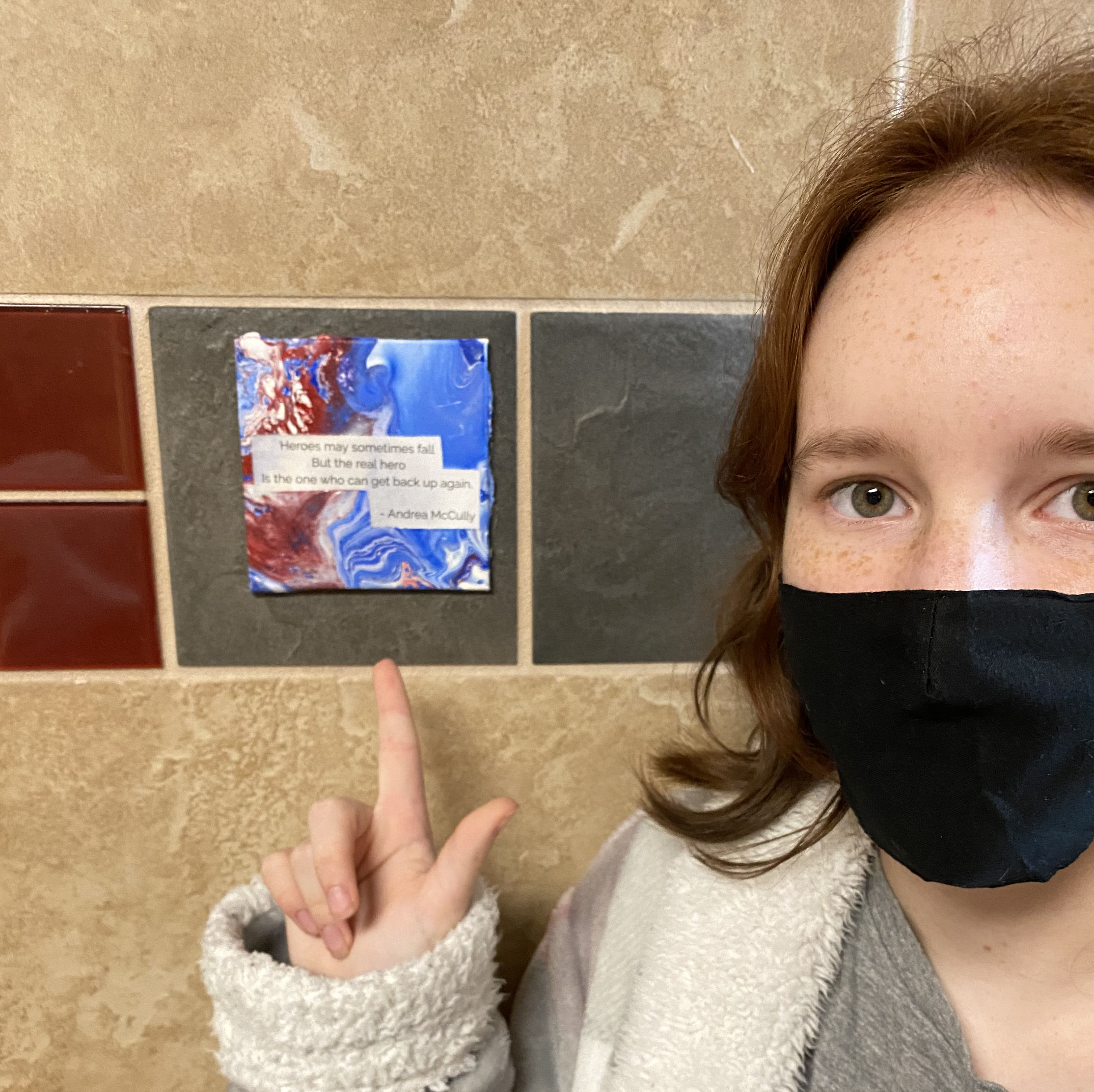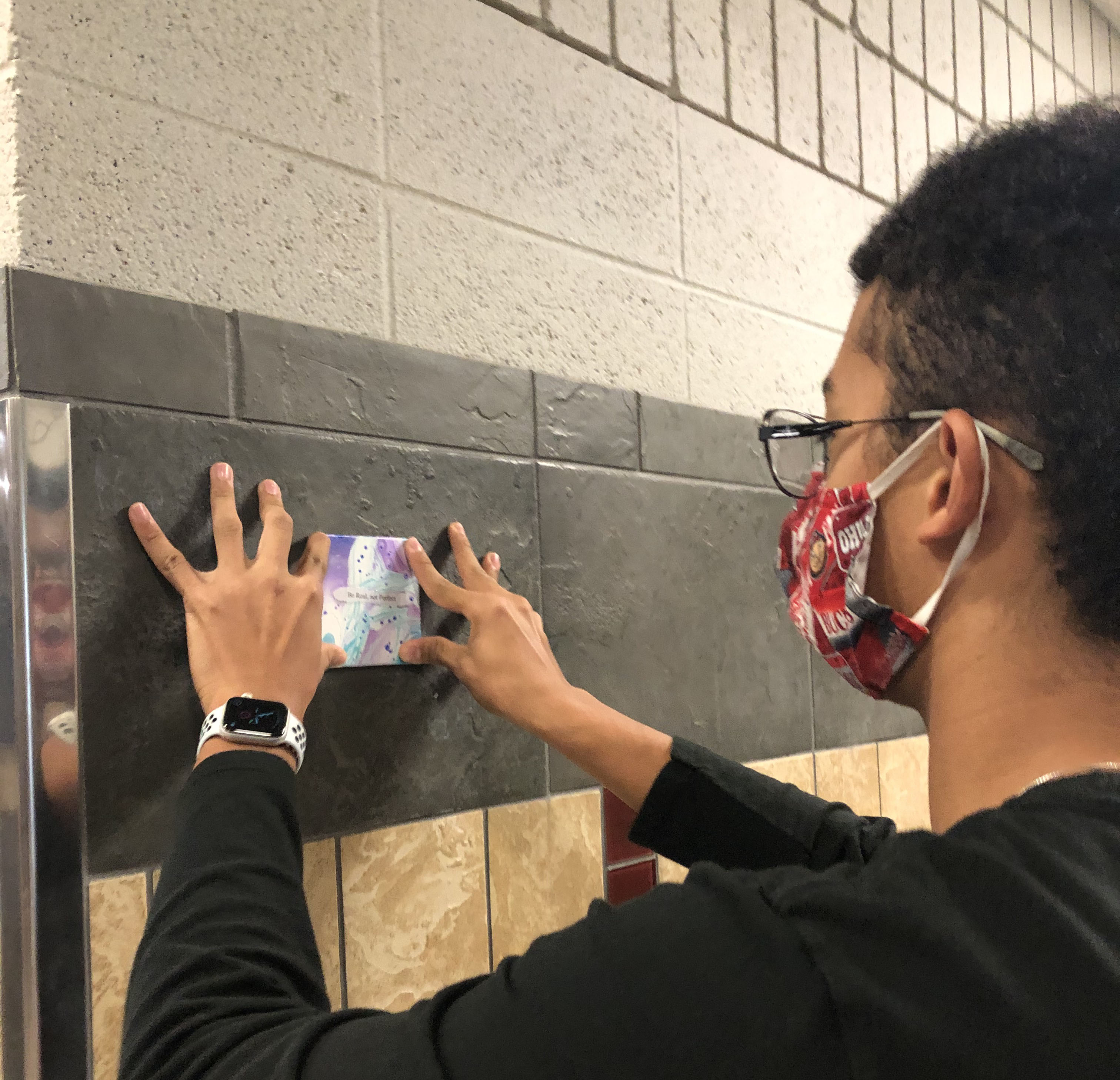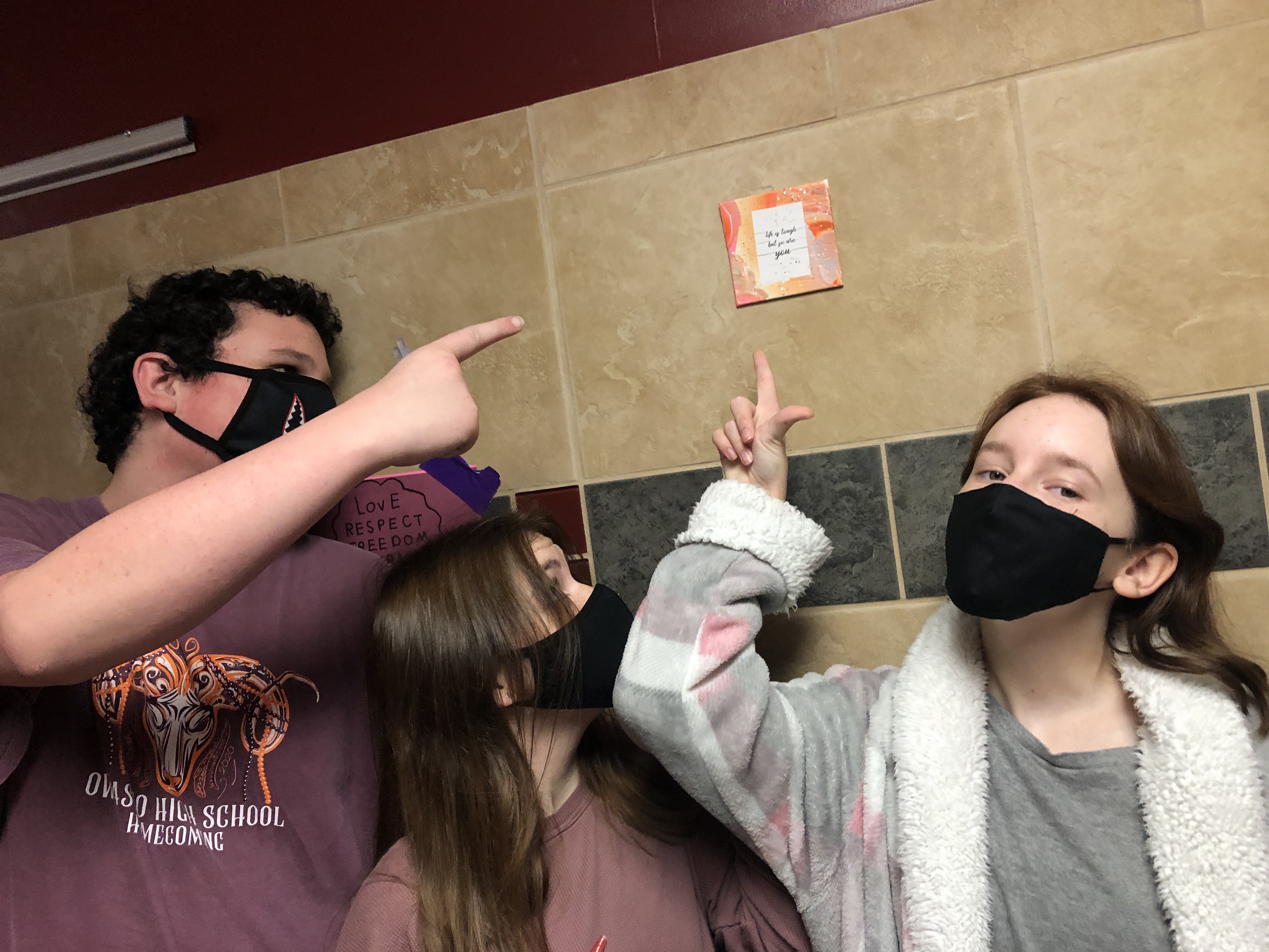 They created their own artwork as a background for their quote. Afterward, they traveled around the campus to hang the art in the hopes of spreading positive thoughts throughout the school.