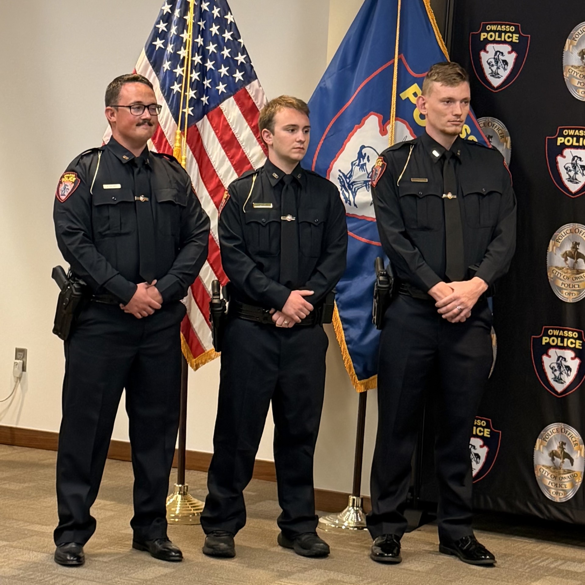 10/02/2025 – On Tuesday, September 30th the Owasso Police Department swore in three new officers, and promoted one.