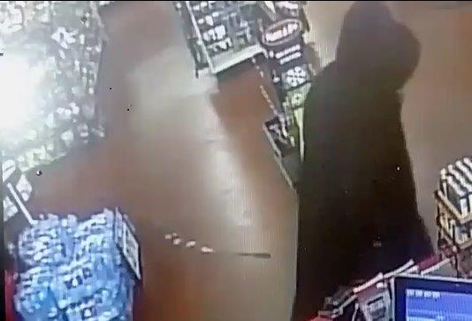 The suspect from the attempted robbery was described as a white male, approximately 5’10” tall. He was wearing black/white Nike athletic shoes and a black puffy full-length coat with dark brown fur around the brim of the hood.