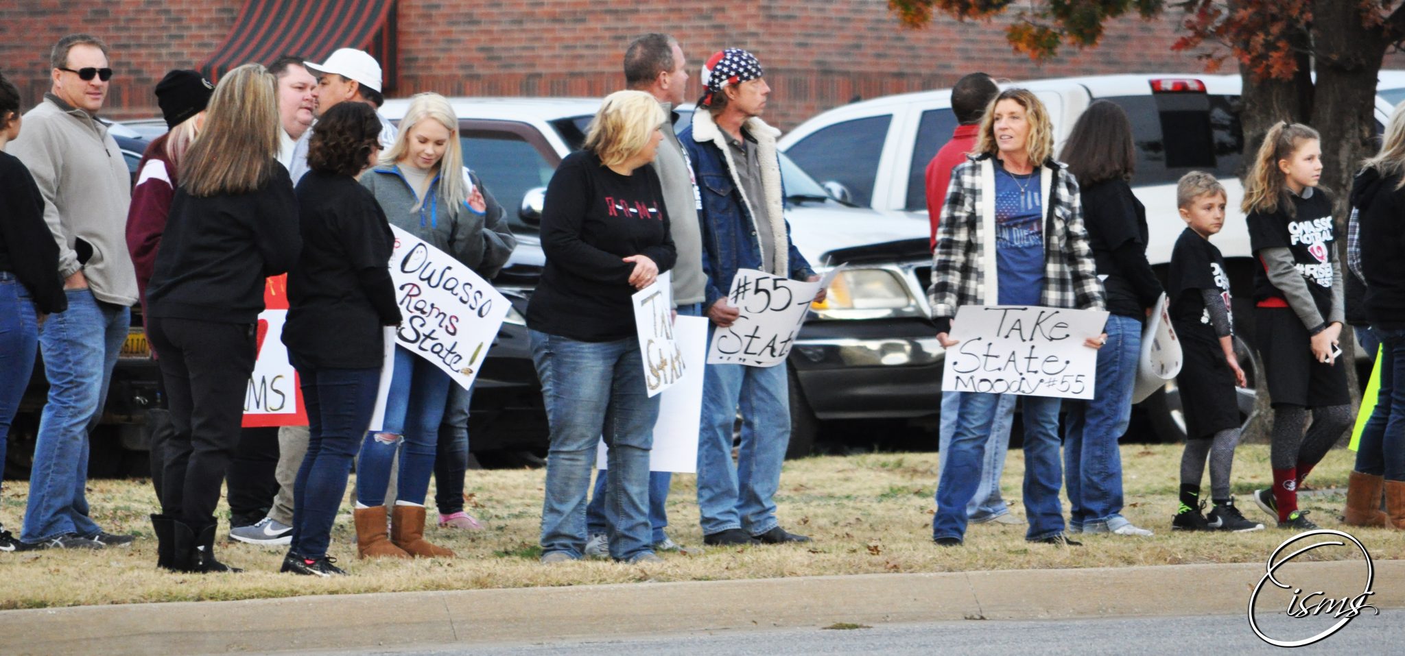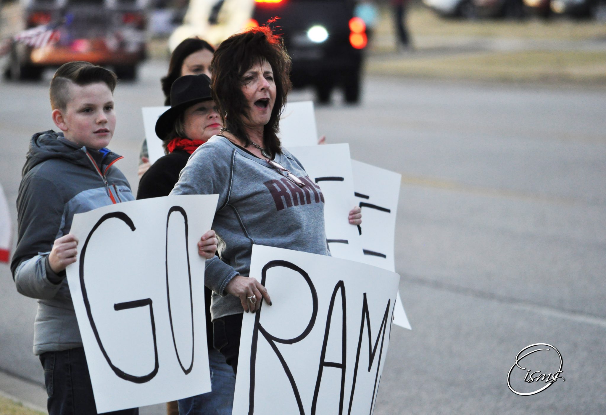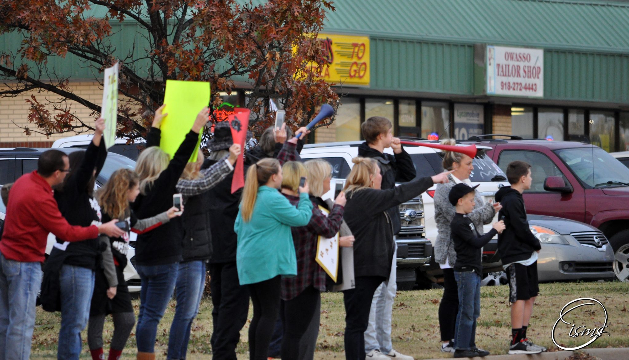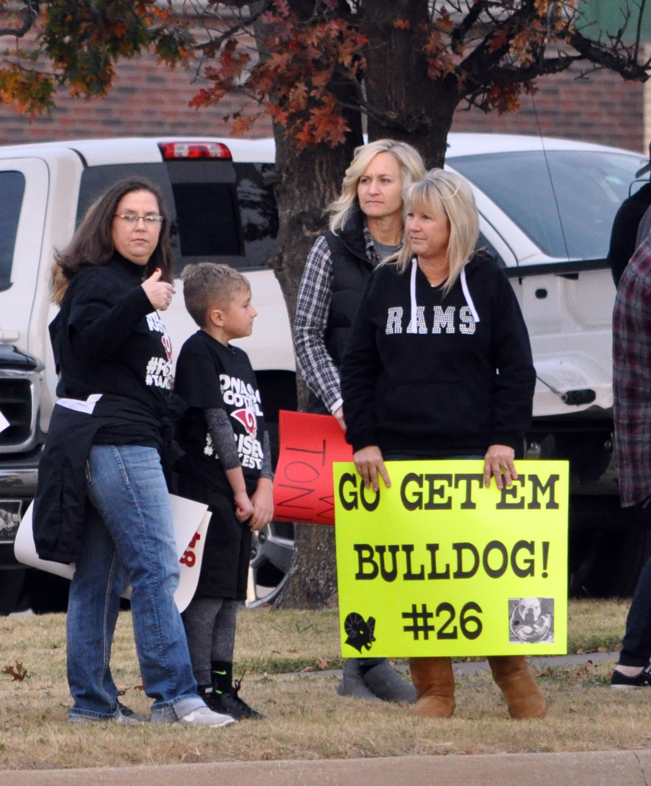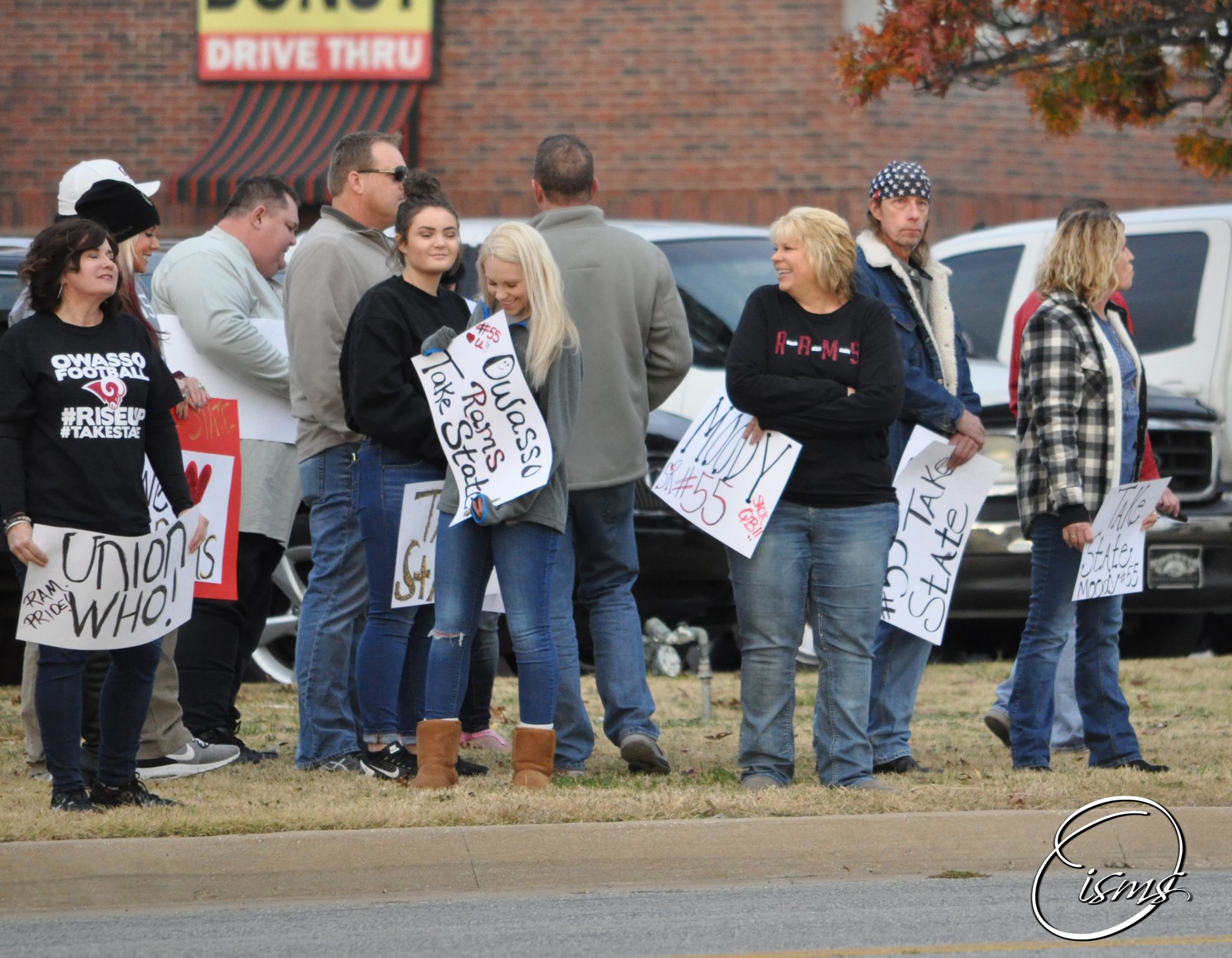 12/01/2017 Owasso Ram fans lined 86th Street North Friday afternoon to cheer on the football team as they headed out for tonight’s state championship game.