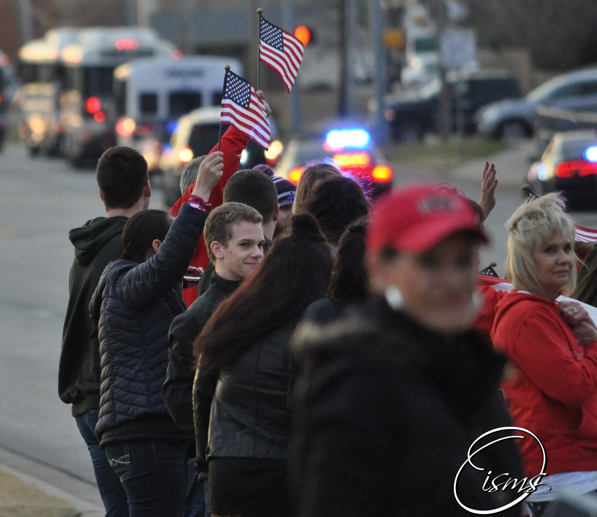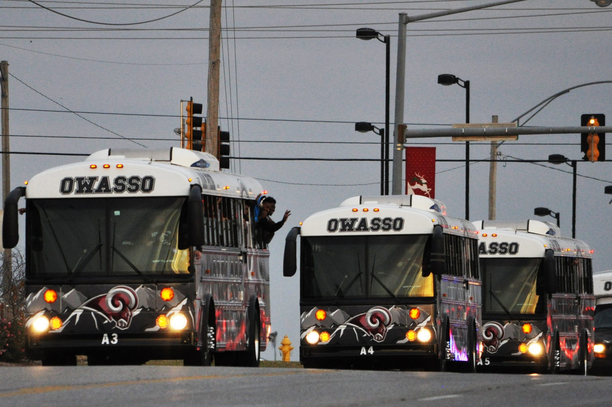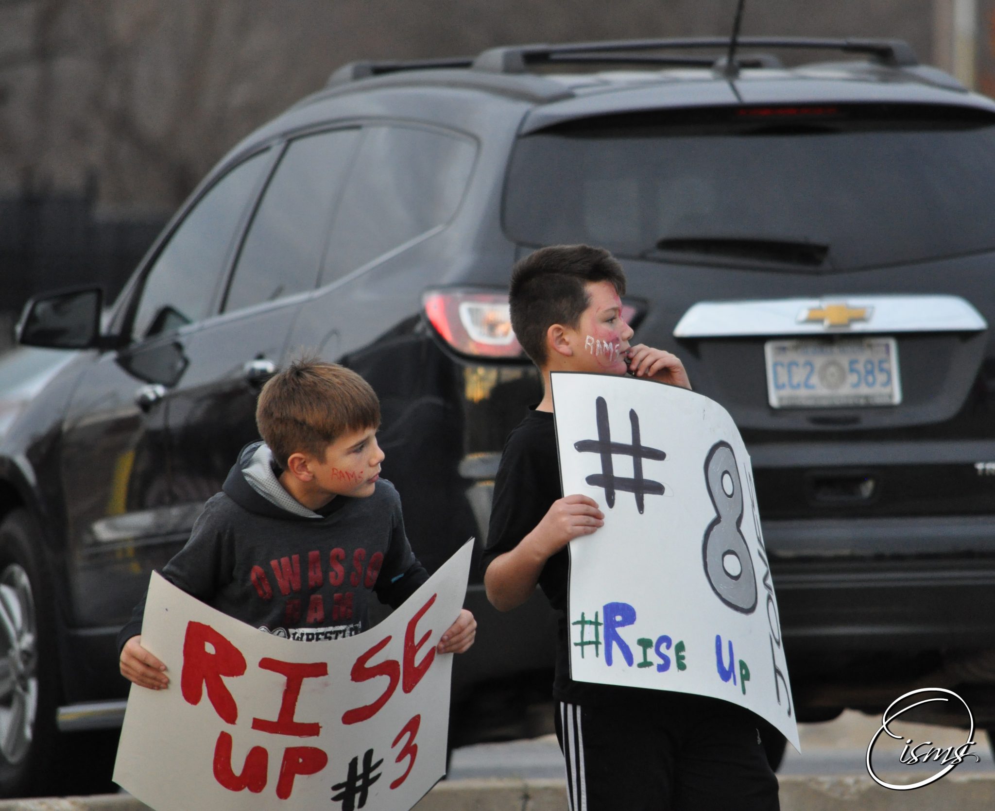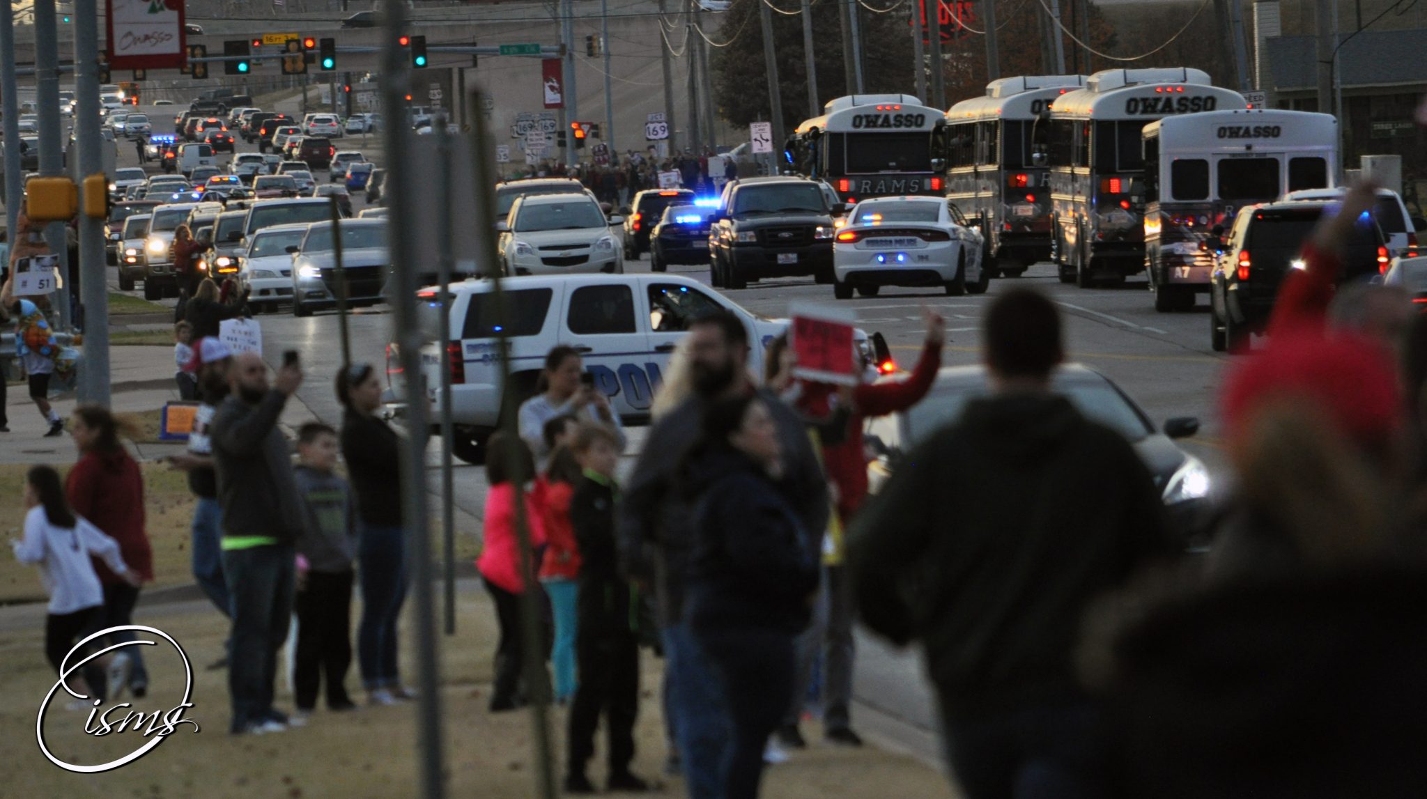 12/01/2017 Owasso Ram fans lined 86th Street North Friday afternoon to cheer on the football team as they headed out for tonight’s state championship game.