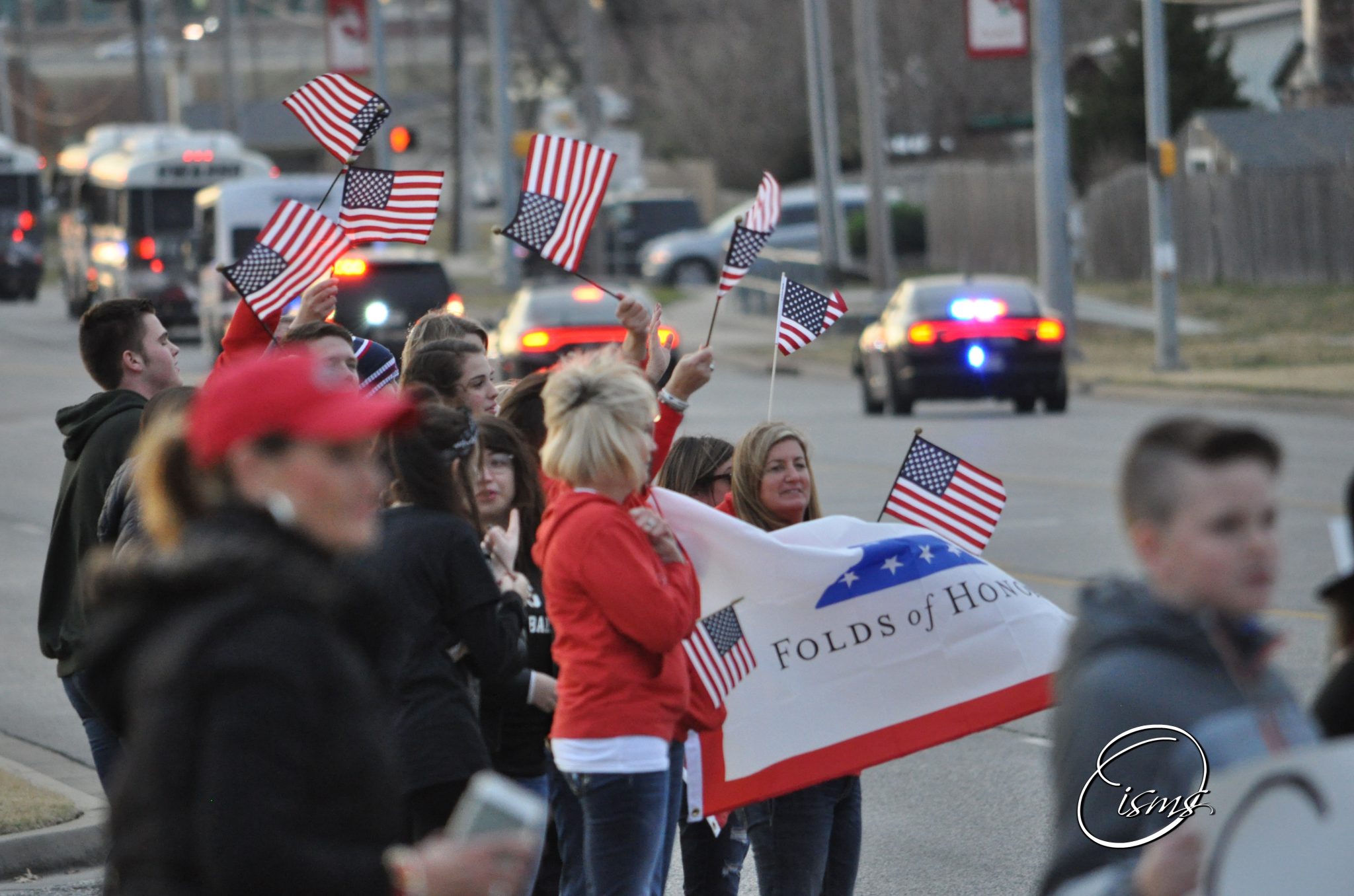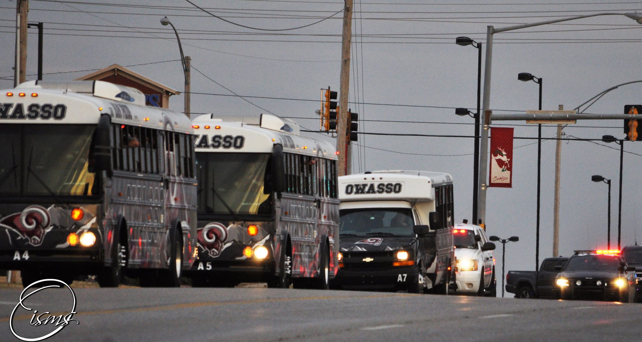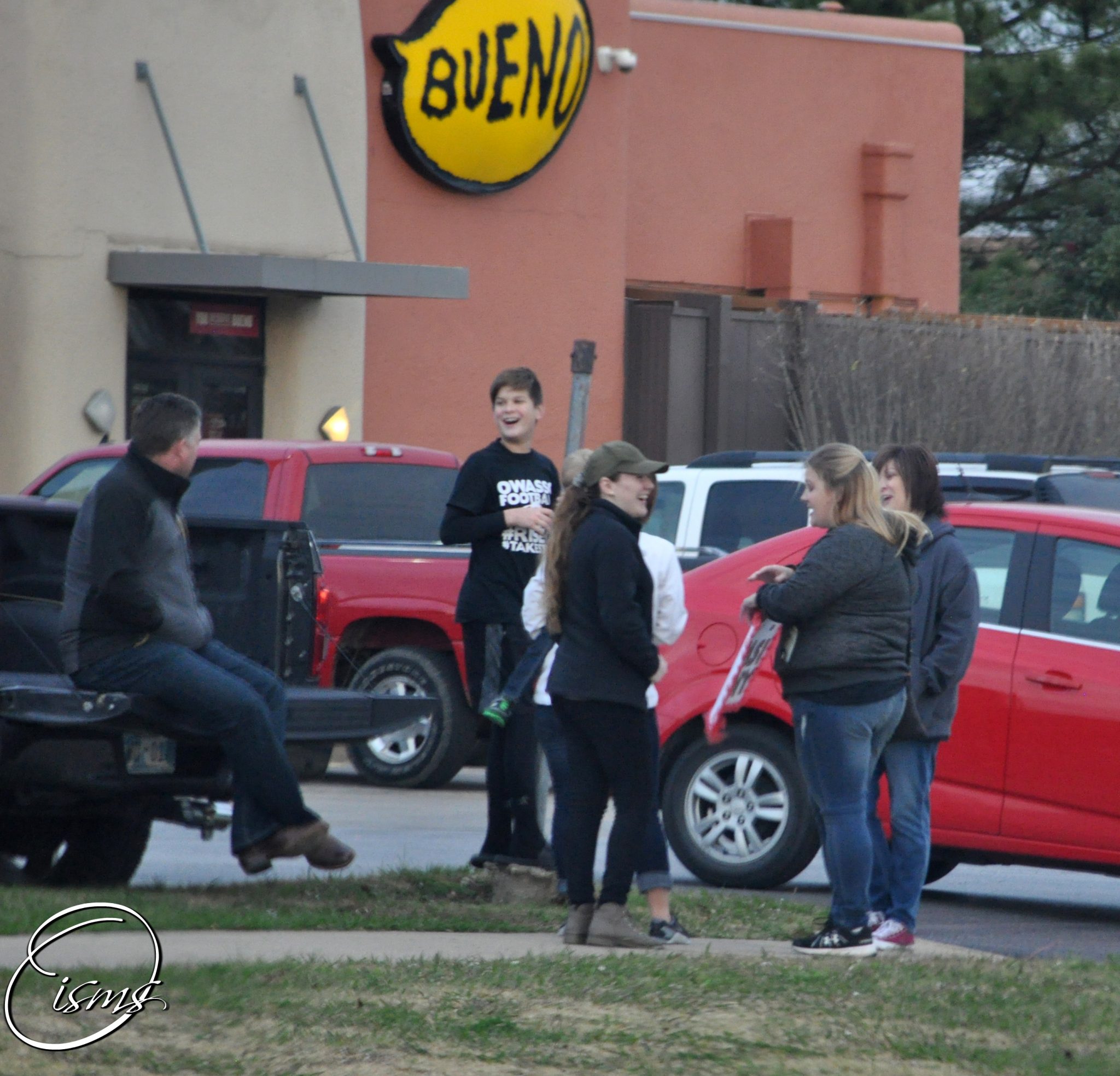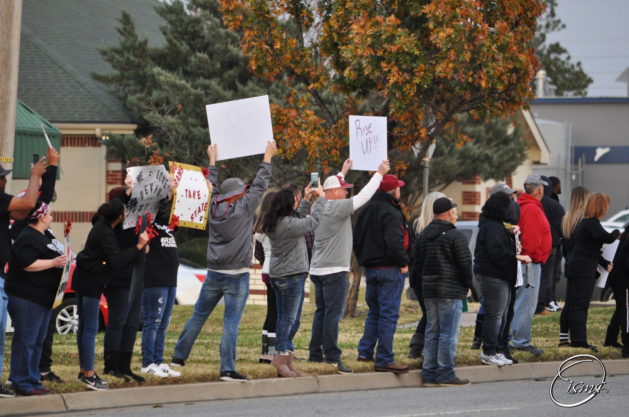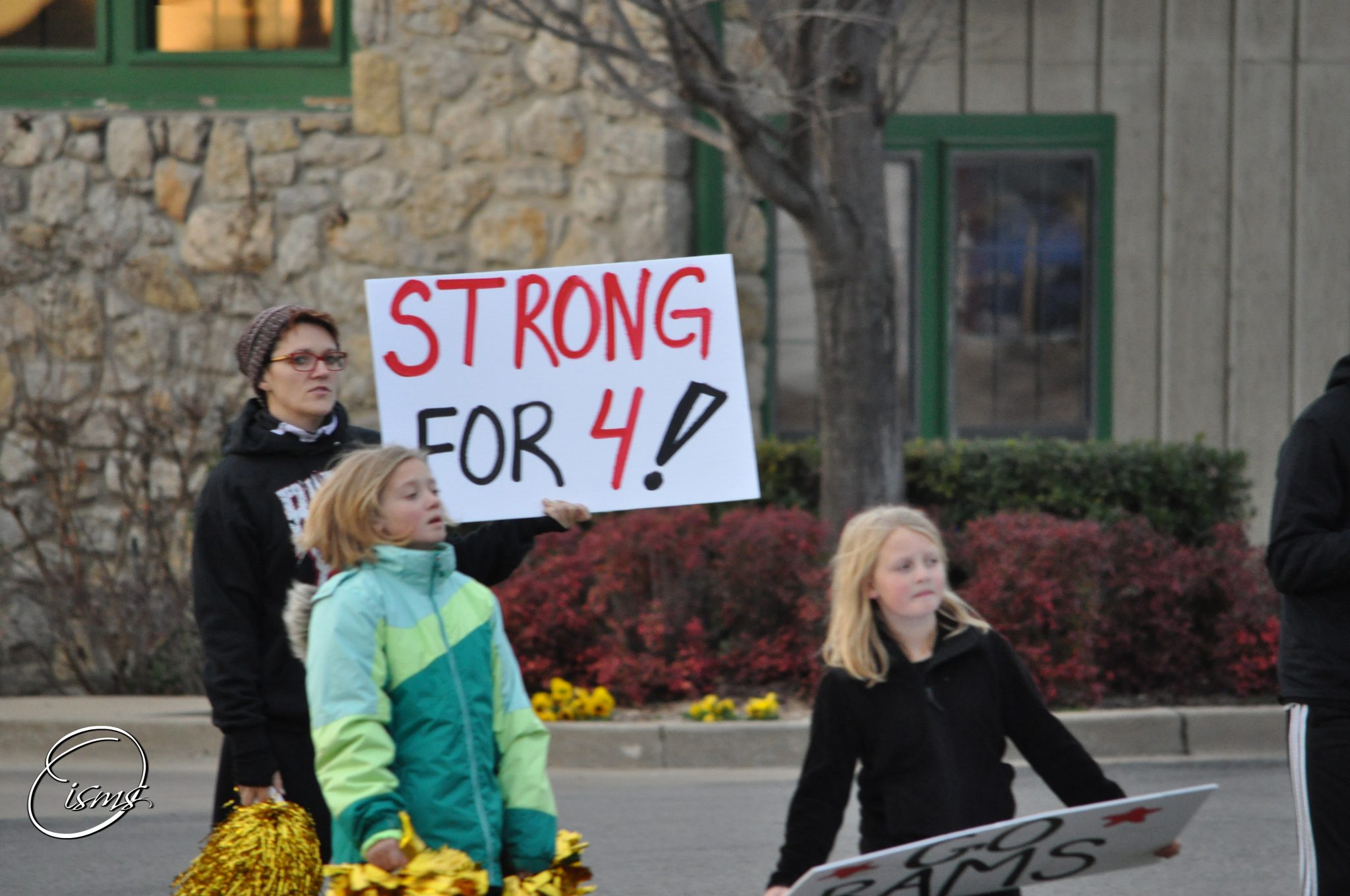 12/01/2017 Owasso Ram fans lined 86th Street North Friday afternoon to cheer on the football team as they headed out for tonight’s state championship game.