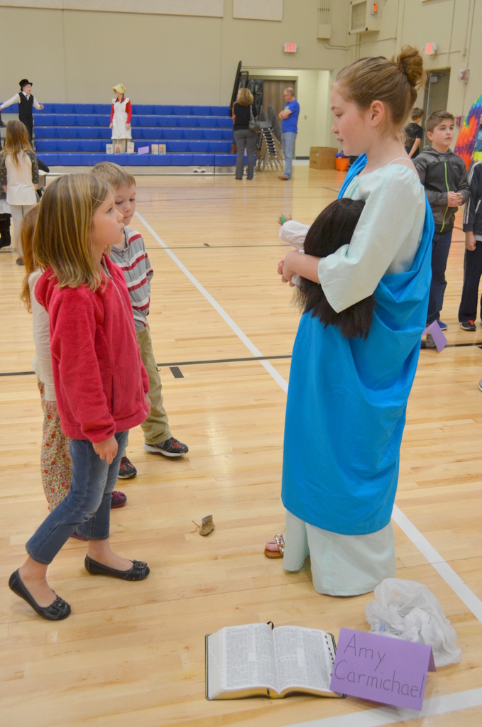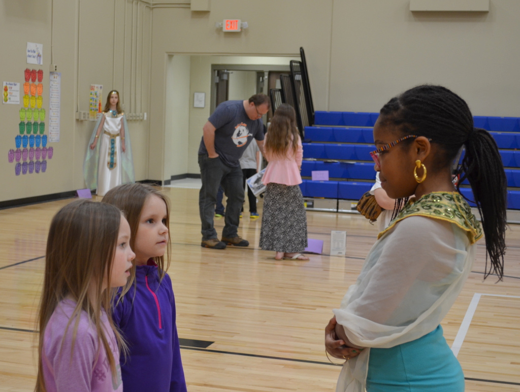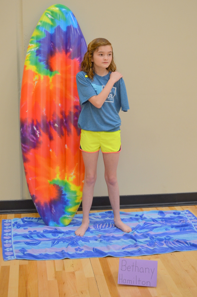When guests walked into the Rejoice Elementary Campus Gymnasium, students in costume were frozen in place. Once the visitors “pressed their buttons” – a sticker on their hand or prop – the characters came to life and told their unique stories. Amelia Earhart, Michael Jordan, Cleopatra and Bethany Hamilton were among the figures represented.